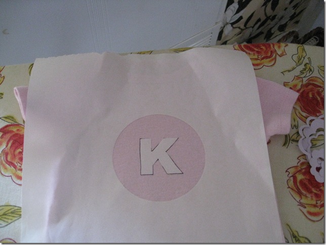 I started by printing off my initial in a font I liked. Then I placed the printed initial under the freezer paper and traced. The freezer paper is a bit translucent so you can easily see to trace your pattern. Next I cut out the K using an X-Acto knife. I cut the circle out using my circle cutter.
